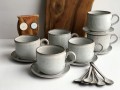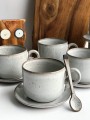 Filiżanki zostały wykonane ręcznie metodą odlewania a spodeczek wykonany ręcznie z płata gliny.