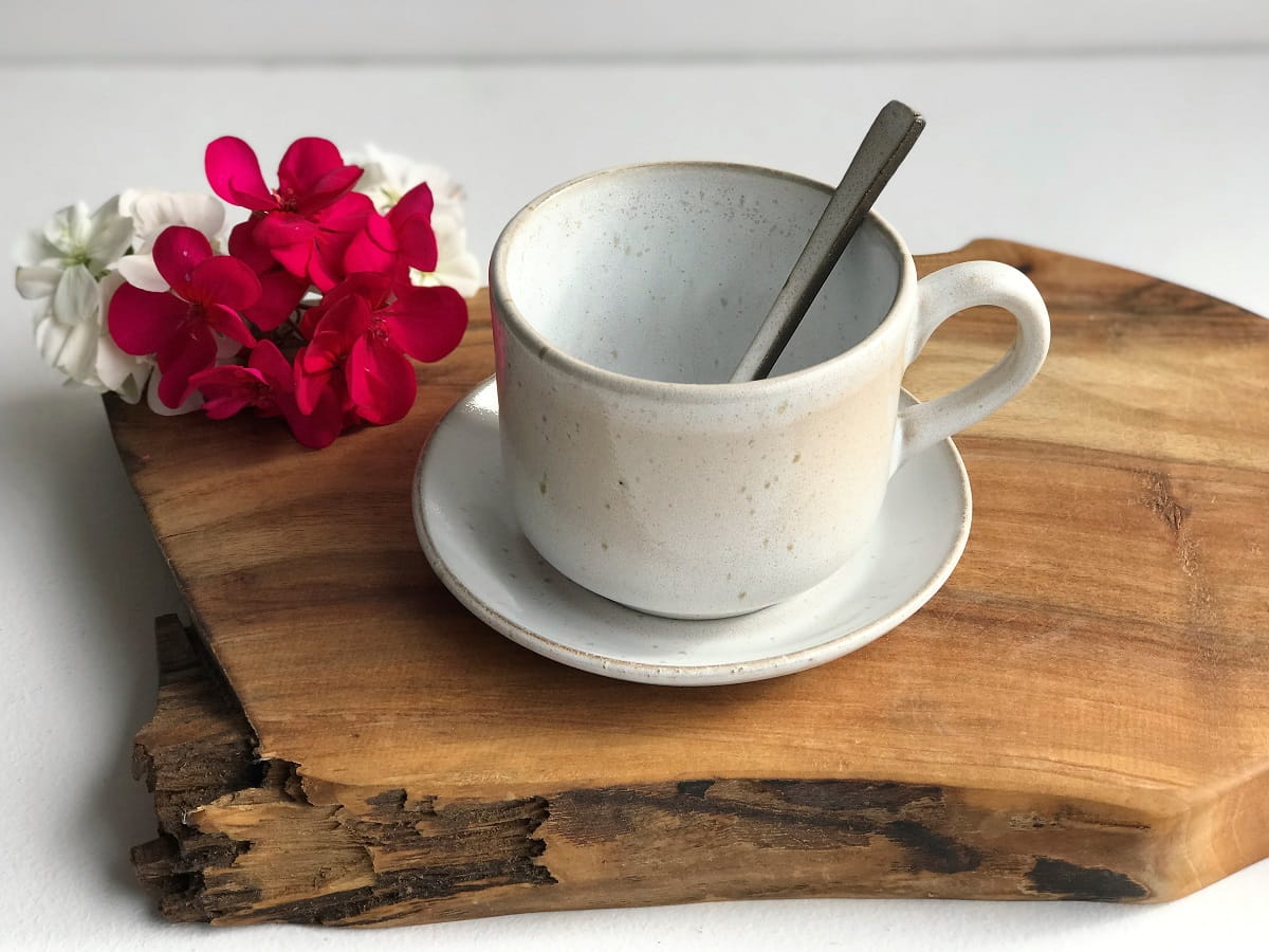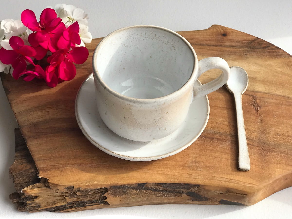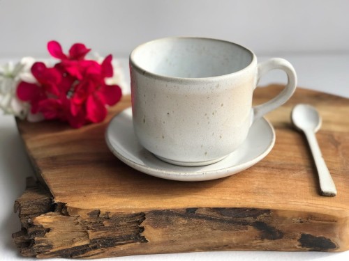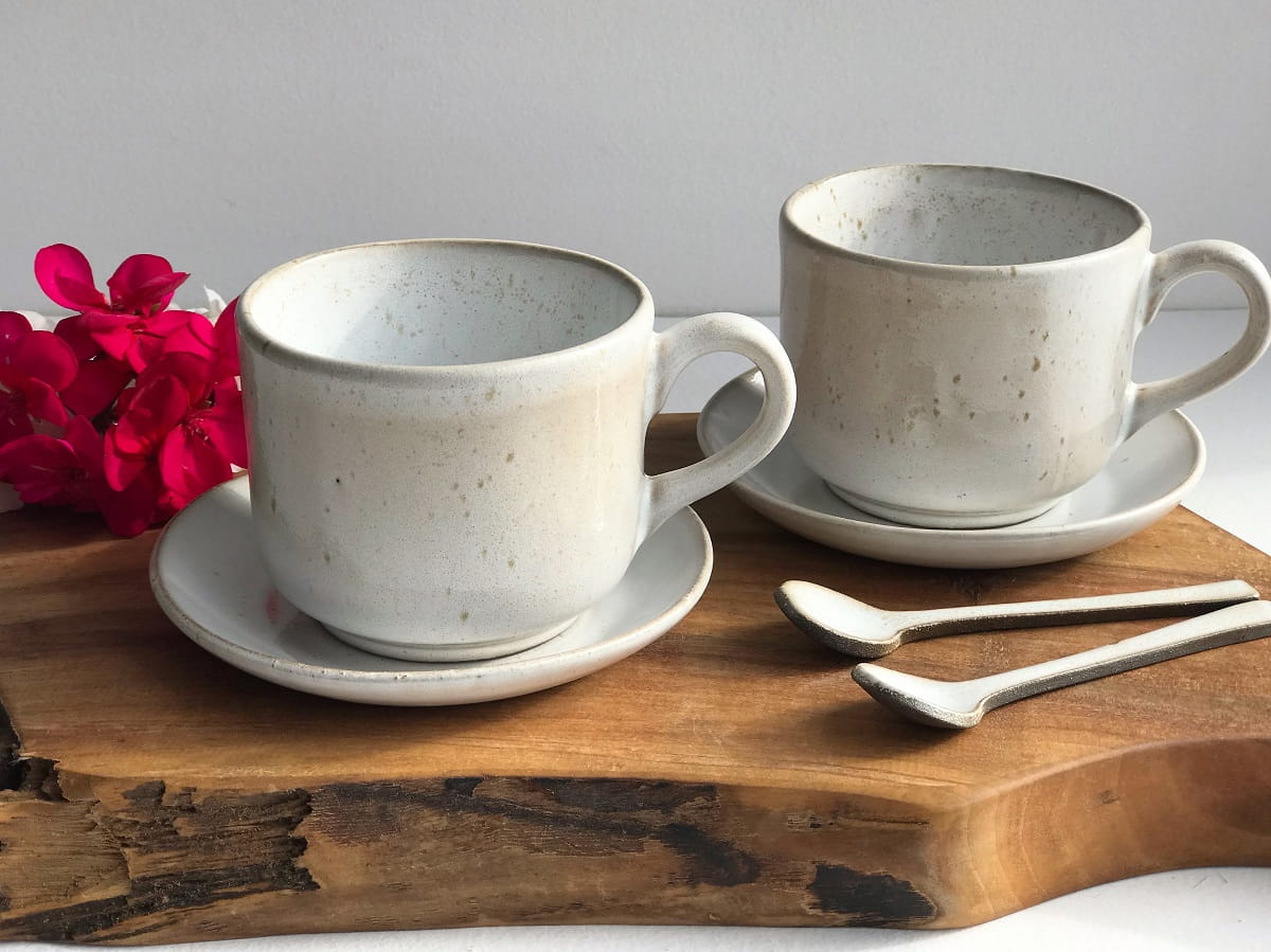 Filiżanki zostały wykonane ręcznie metodą odlewania a spodeczek wykonany ręcznie z płata gliny.