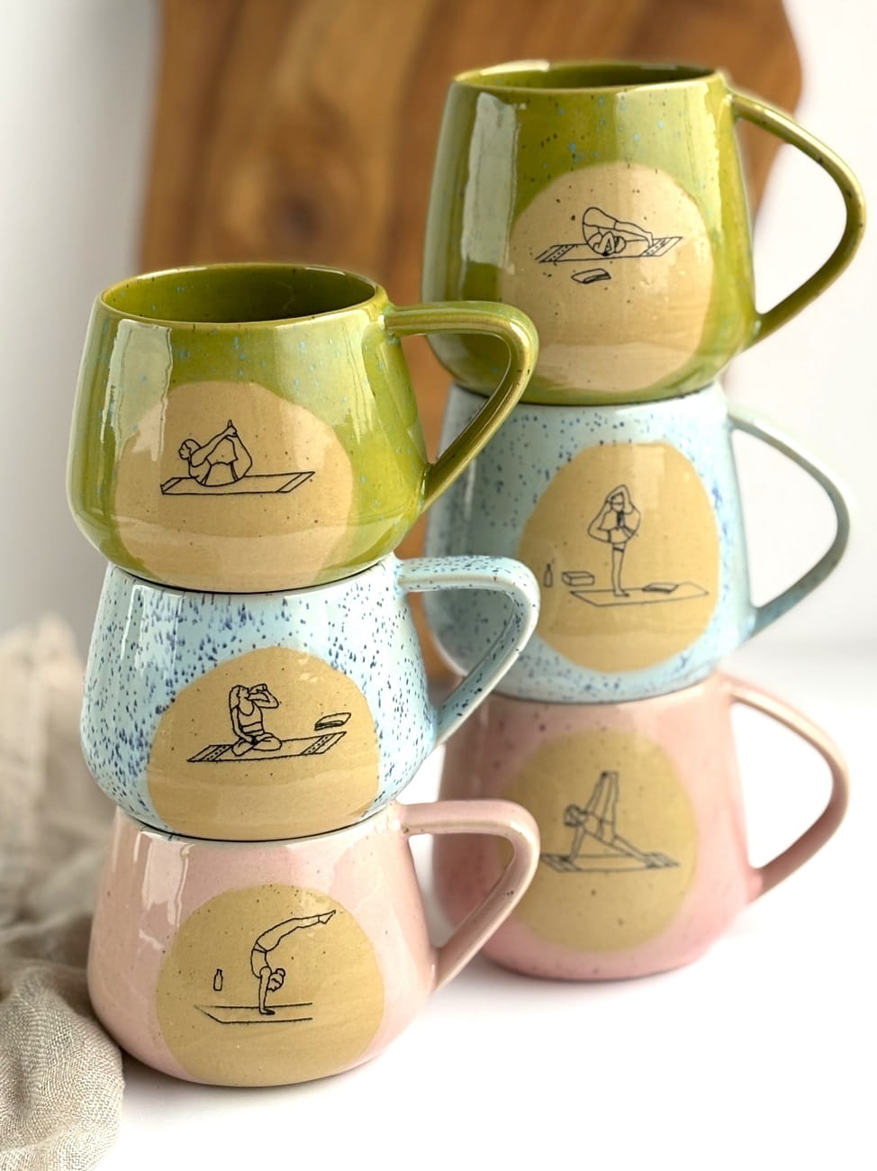 Niebieski ręcznie robiony kubek ceramiczny / filiżanka - Joga