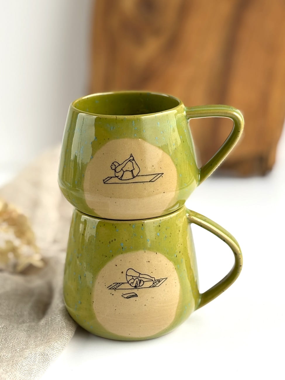 Zielony ręcznie robiony kubek ceramiczny / filiżanka- Joga