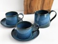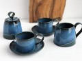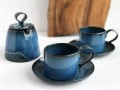 Filiżanka ceramiczna ze spodkiem ręcznie robiona niebieska 180 ml - Borówka