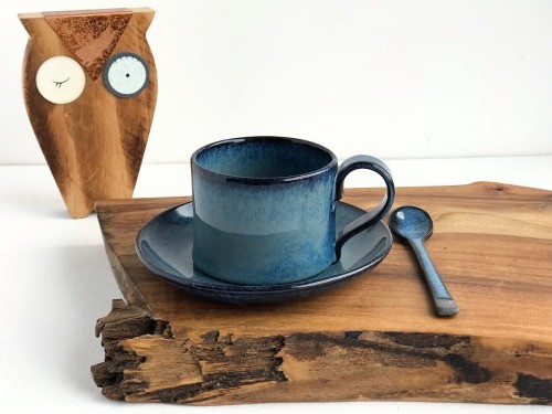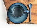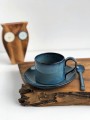 Filiżanka ceramiczna ze spodkiem ręcznie robiona niebieska - Niebo