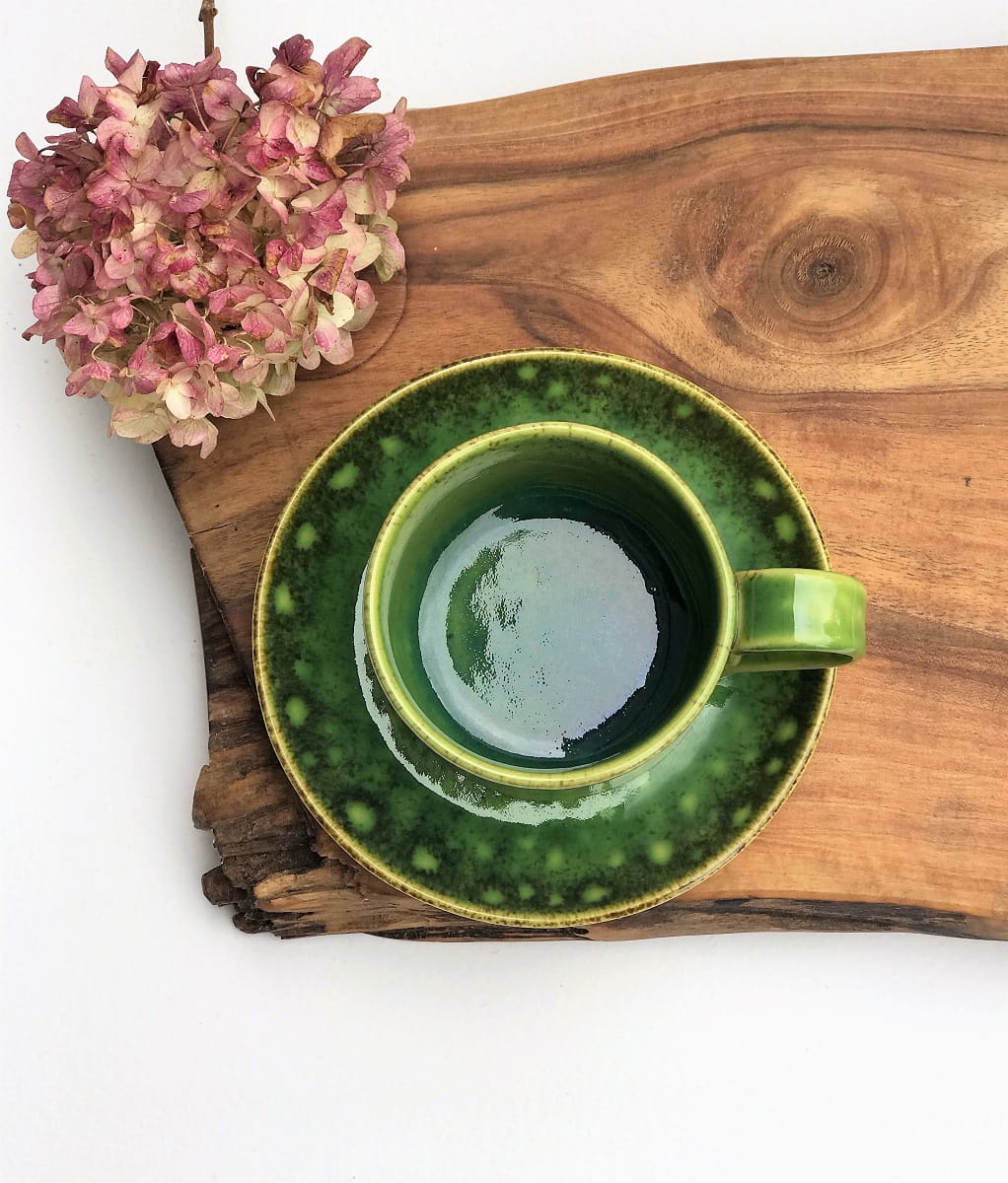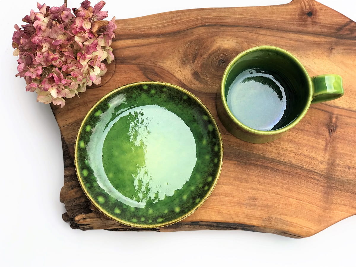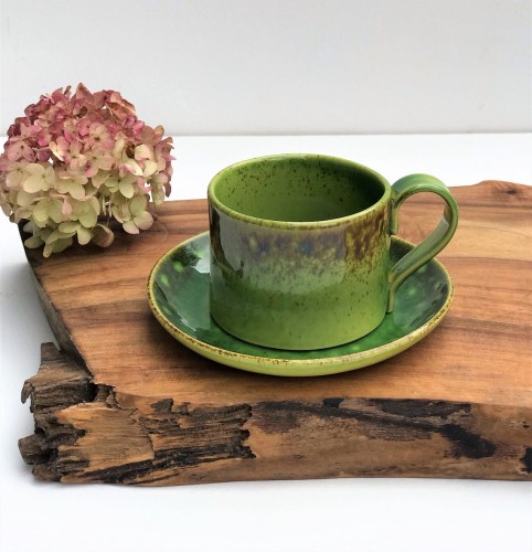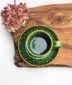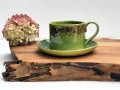 Filiżanka ceramiczna ze spodkiem ręcznie robiona zielona - Natura