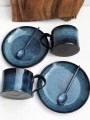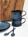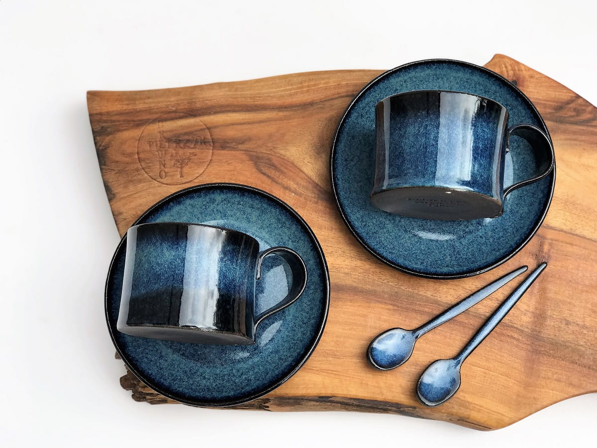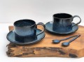 Ręcznie lepiona filiżanka ceramiczna ze spodeczkiem plus łyżeczki - zestaw dla 2 osób.