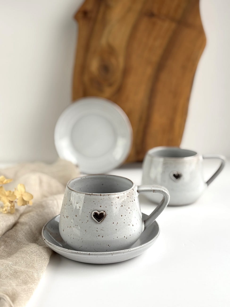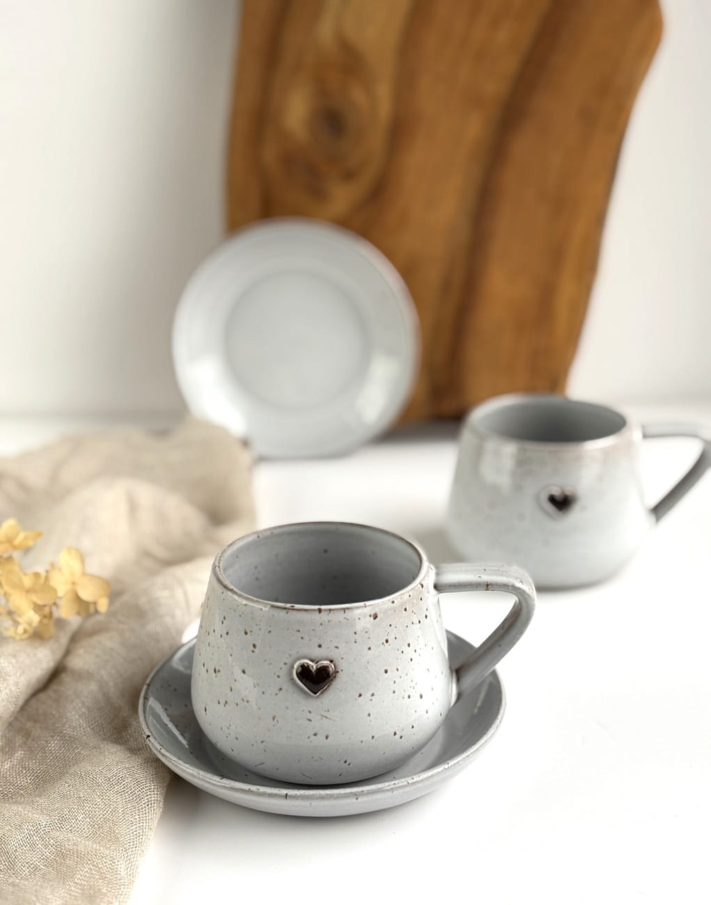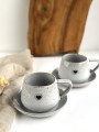 Ręcznie robiona filiżanka ceramiczna ze spodeczkiem z kolekcji Cappuccino z sercem