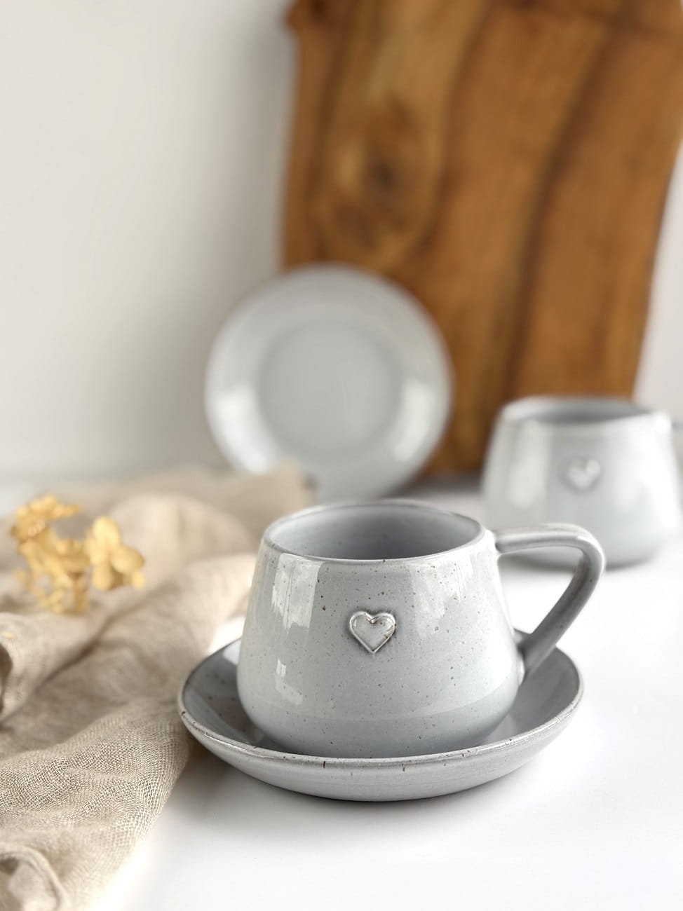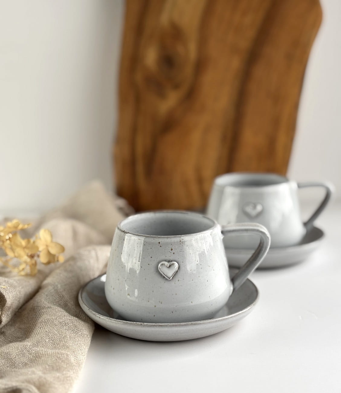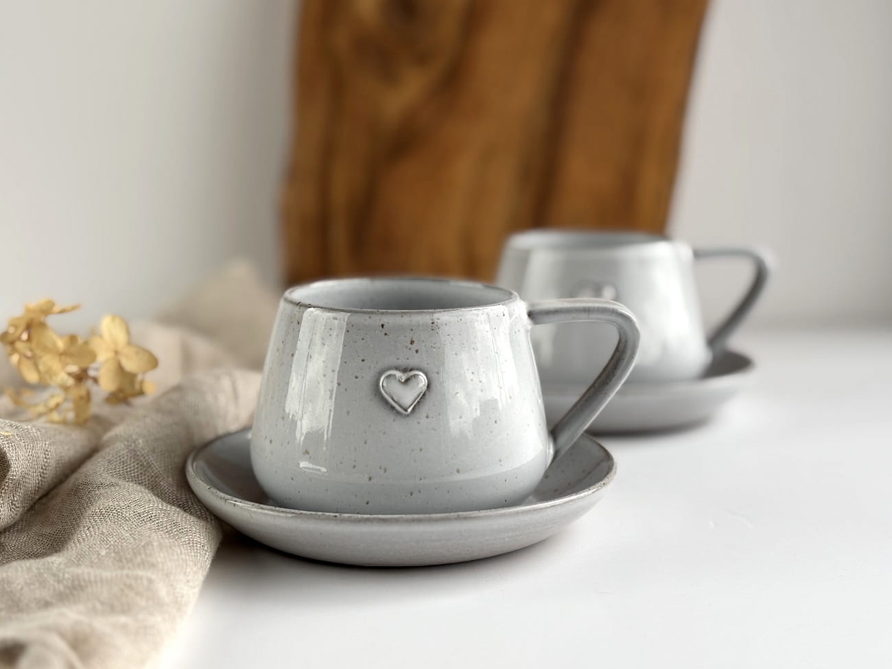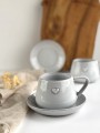 Ręcznie robiona filiżanka ceramiczna z sercem w komplecie ze spodeczkiem z kolekcji Cappuccino.