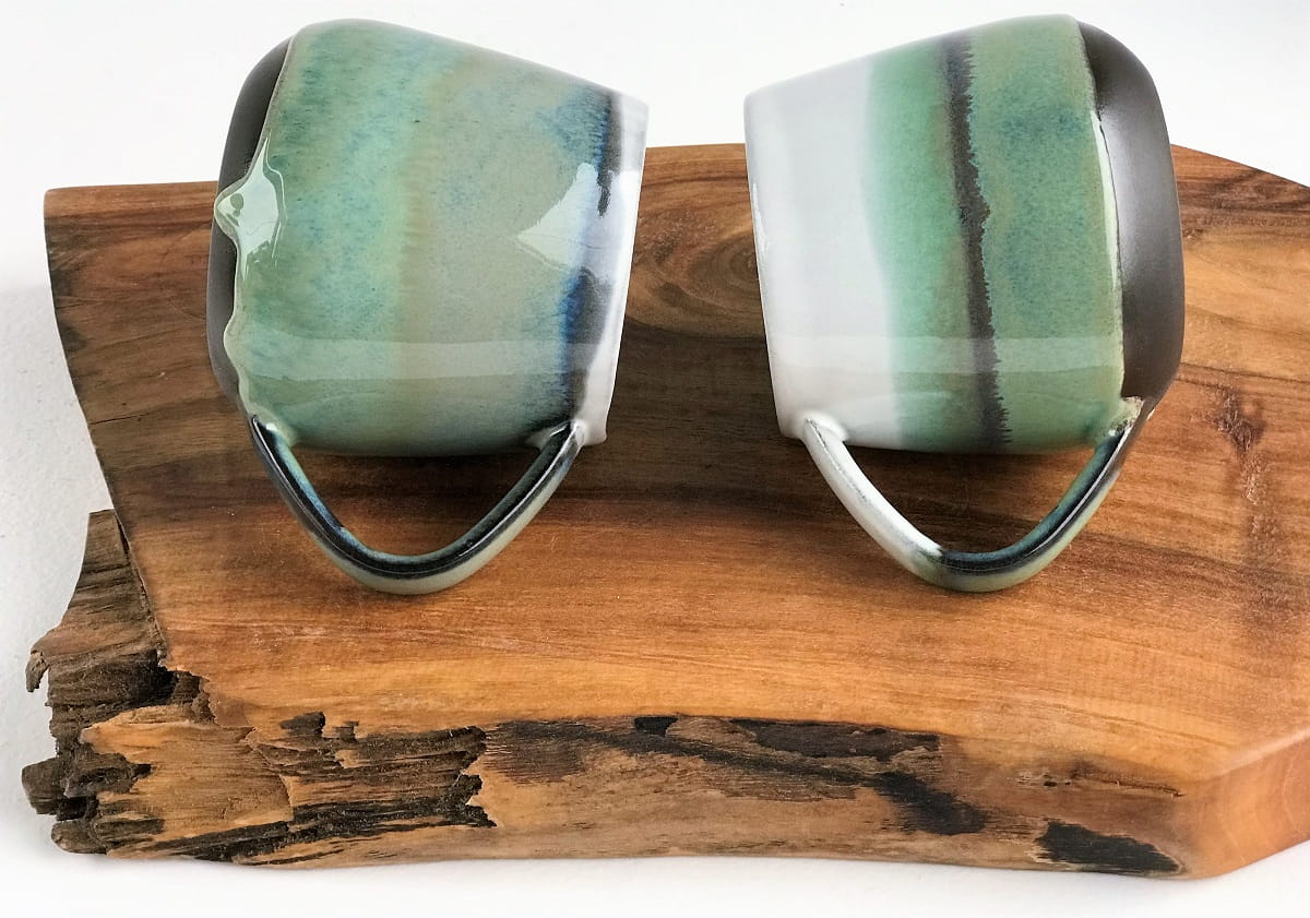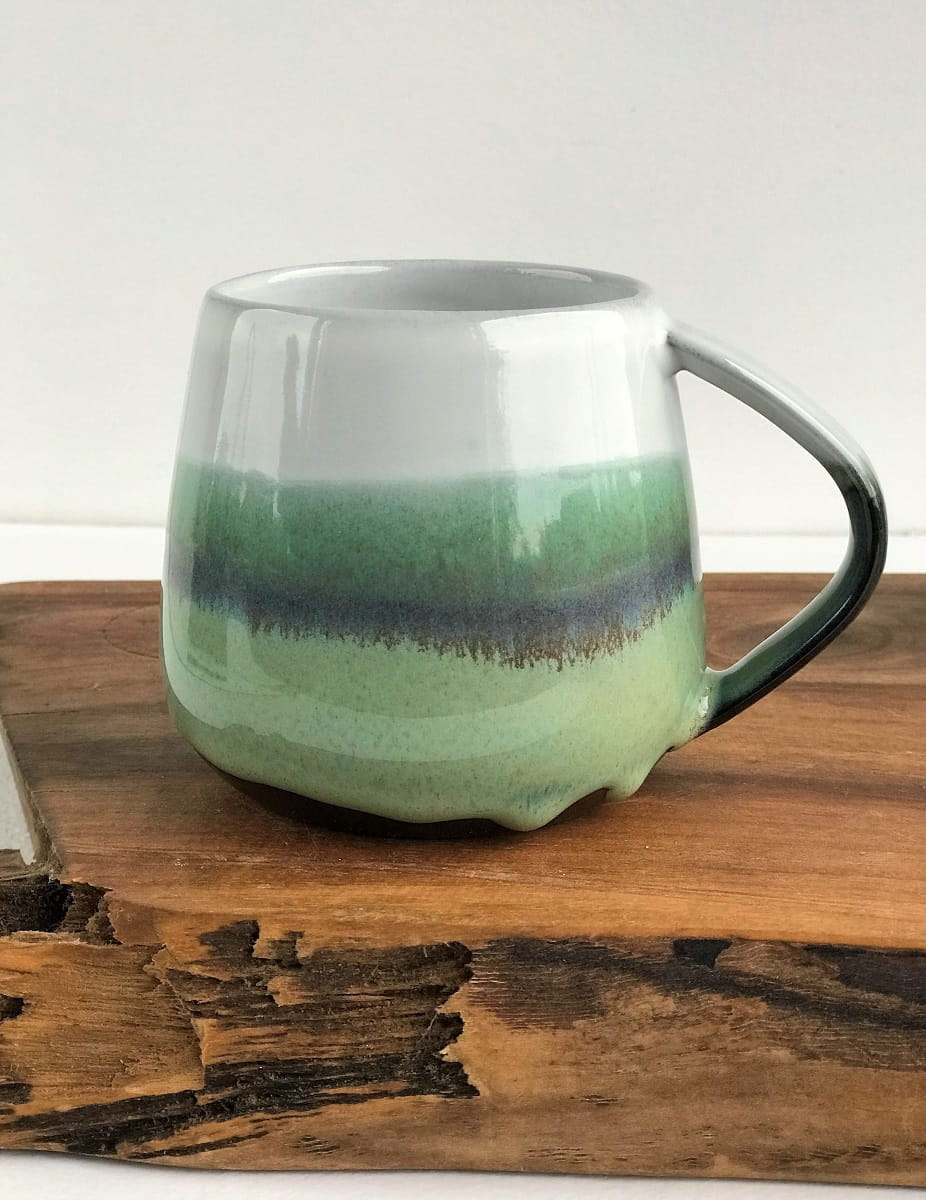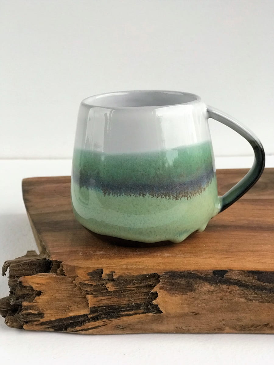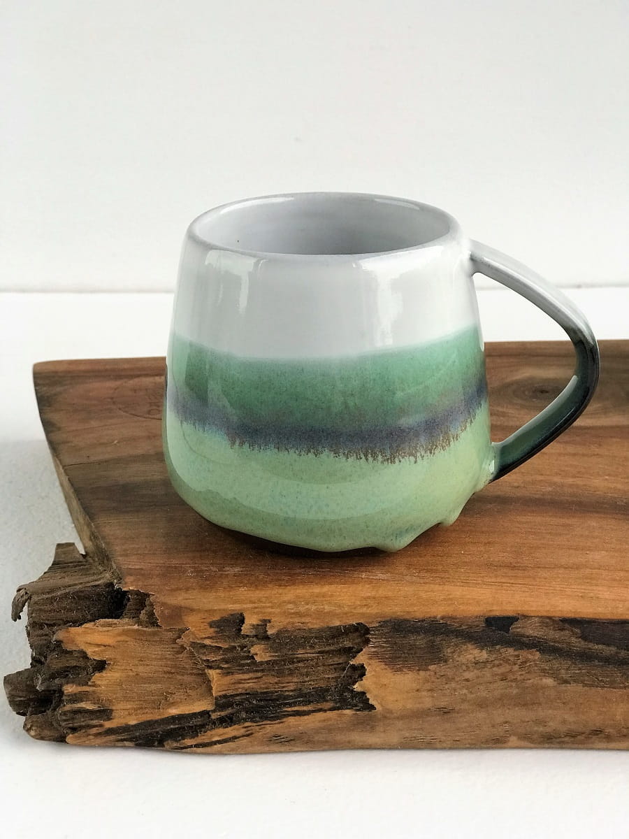 Ręcznie robiony kubek ceramiczny biało-zielony.