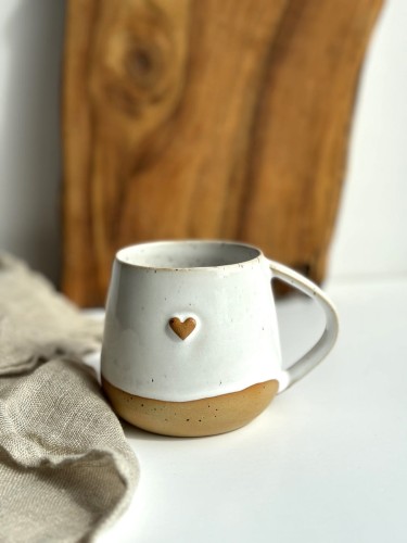 Kubek Beczułka ręcznie robiony 320 ml - Biały z sercem