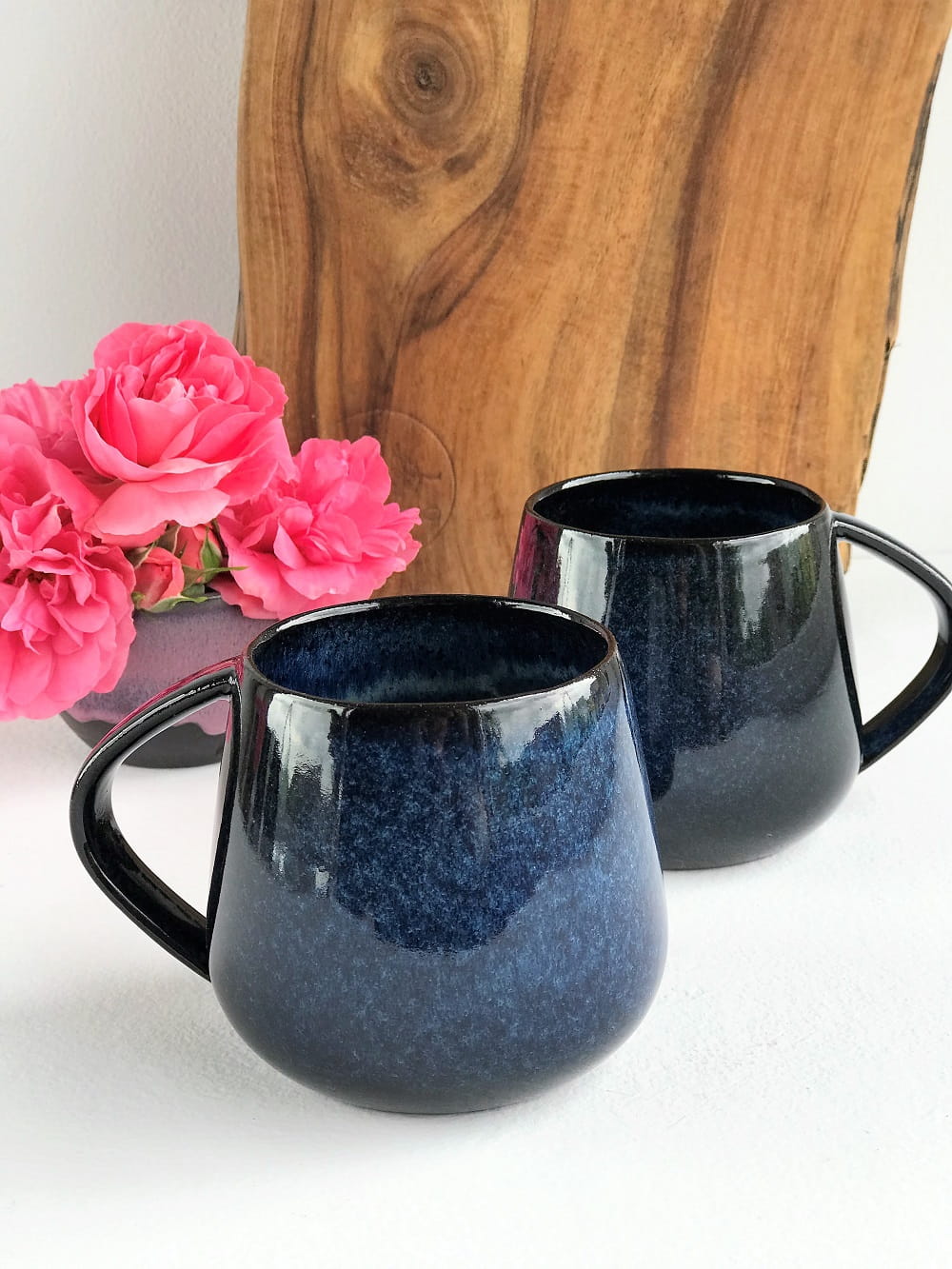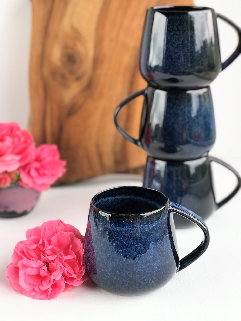 Ręcznie robiony niebieski kubek ceramiczny z kolekcji Nocne niebo.