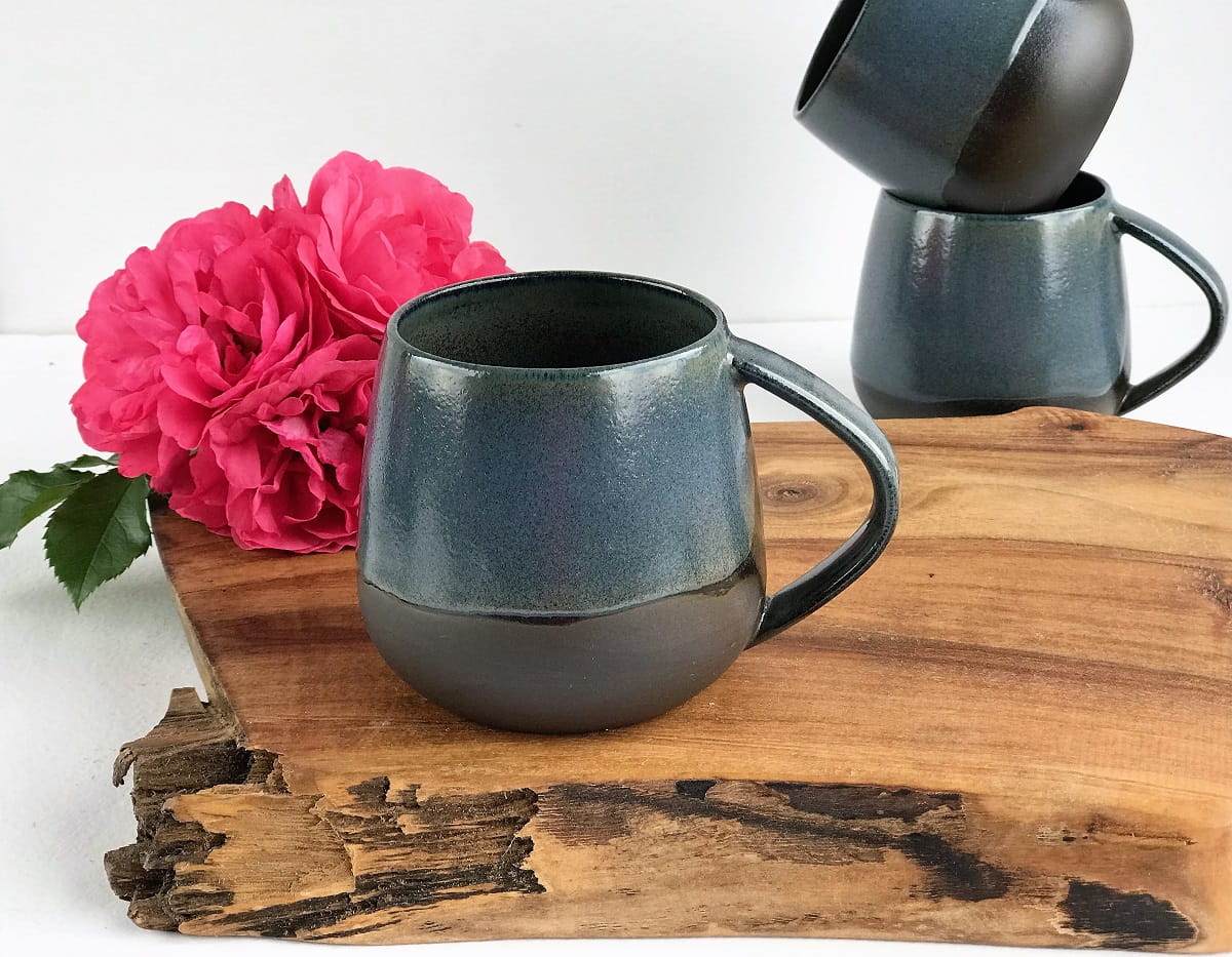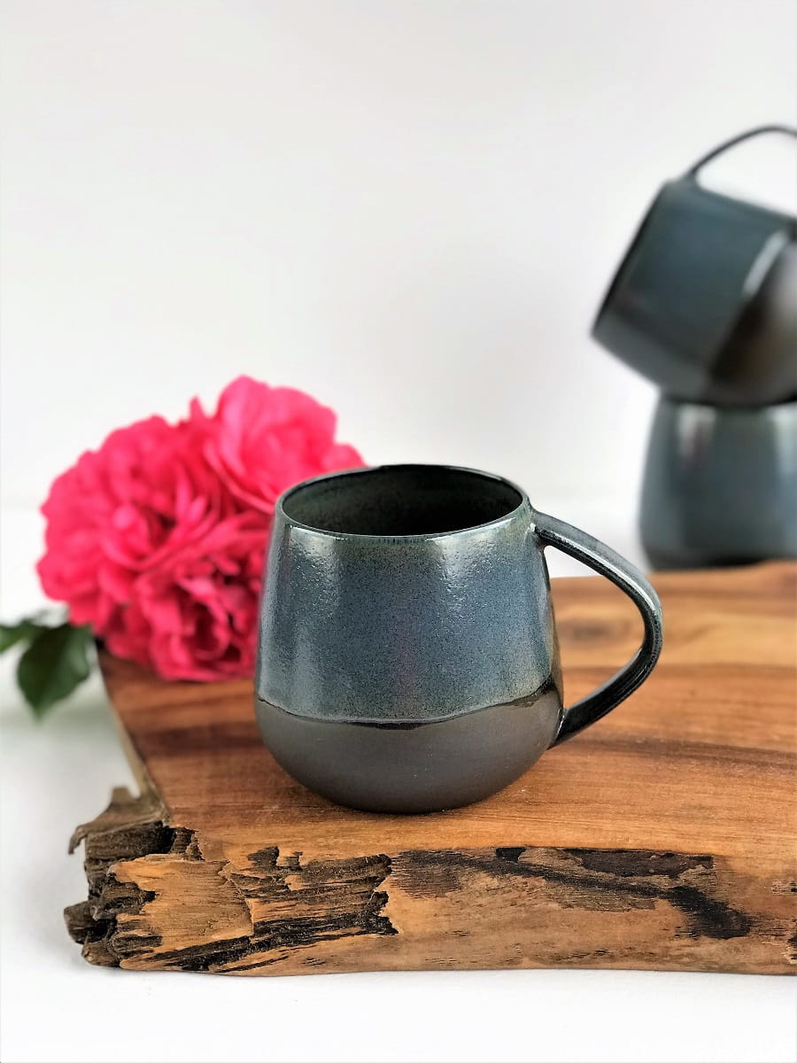Ręcznie robiony kubek ceramiczny szary o pojemności ok. 320 ml