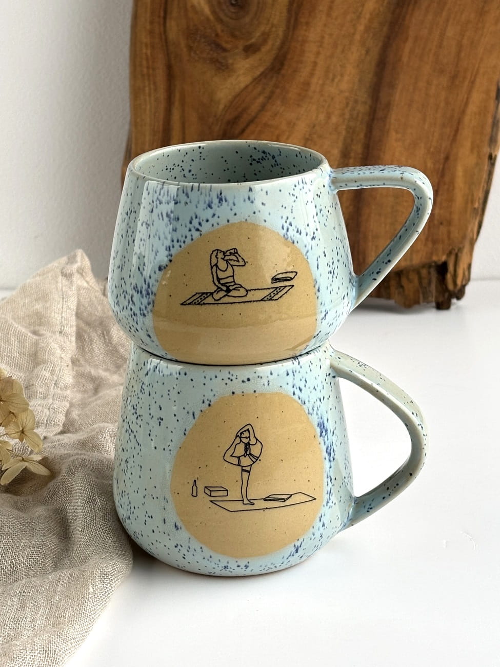 Każdy kubek ceramiczny do jogi jest tworzony ręcznie, powoli i z uważnością. Dzięki temu każdy egzemplarz jest unikatowy i posiada swój własny charakter. Motyw inspirowany jogą przypomina o harmonii ciała i umysłu oraz o chwili zatrzymania w ciągu dnia.
