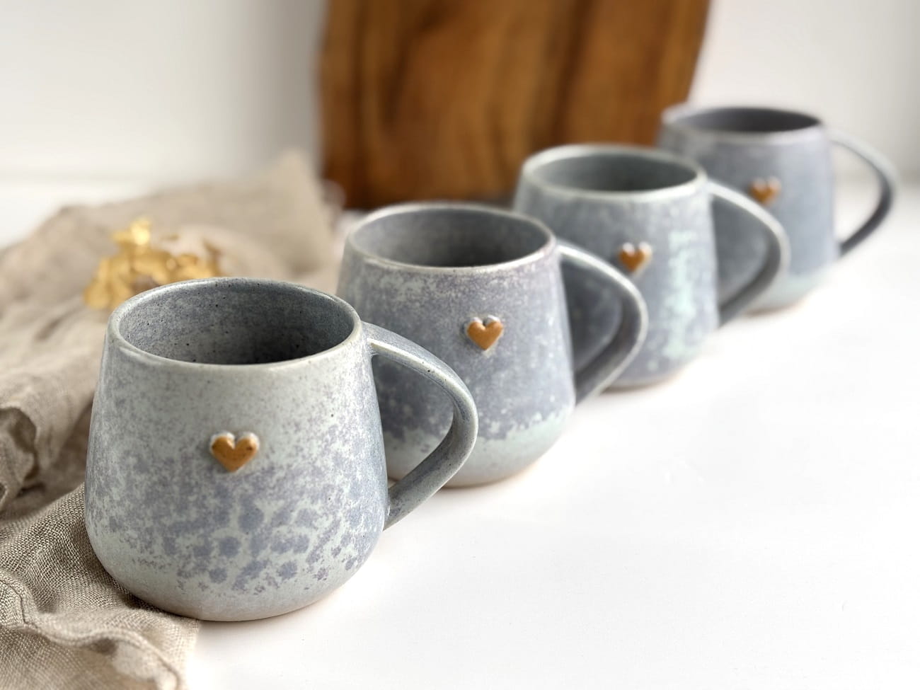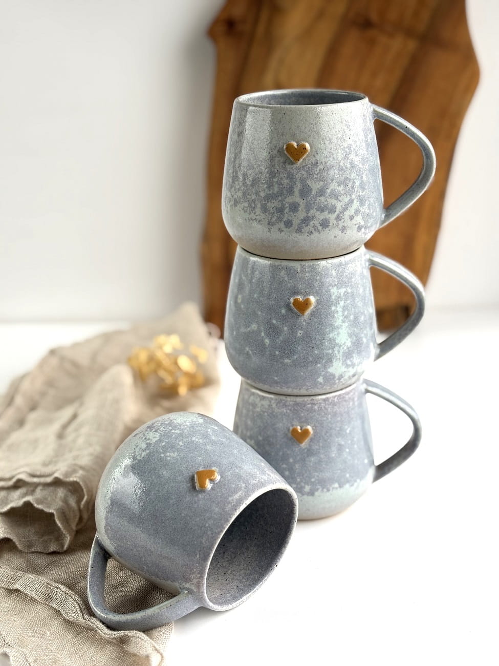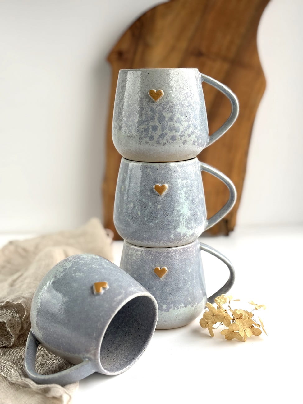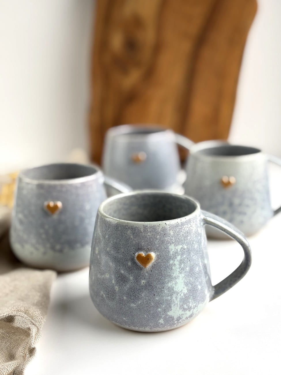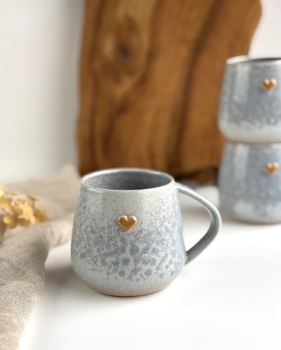 Ręcznie robiony kubek ceramiczny z sercem - Szara lawenda