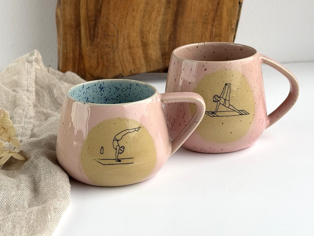 Różowy ręcznie robiony kubek ceramiczny / filiżanka - Joga