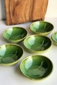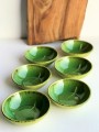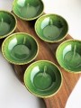 Ręcznie formowana i szkliwiona zielona miseczka z liściem ok. 150 ml