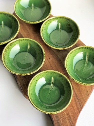 Mała miseczka, miska ceramiczna z listkiem 150 ml zielona - Botanika