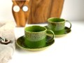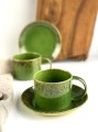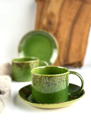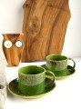 Prosta ręcznie robiona filiżanka ceramiczna ze spodkiem zielona 250 ml - Natura